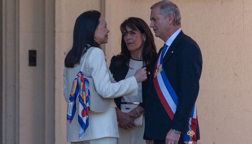 La líder opositora venezolana y ganadora del Premio Nobel de la Paz, María Corina Machado, llegó al Palacio Presidencial de Palacio Presidencial de Cerro Castillo, donde fue recibida por el presidente de Chile, José Antonio Kast, en el marco de las actividades tras el cambio de mando.