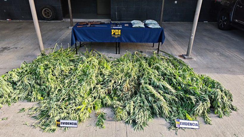 PDI desarticula cultivo de cannabis en Collipulli: incauta mas de 2 kilos de droga, 116 plantas y armamento